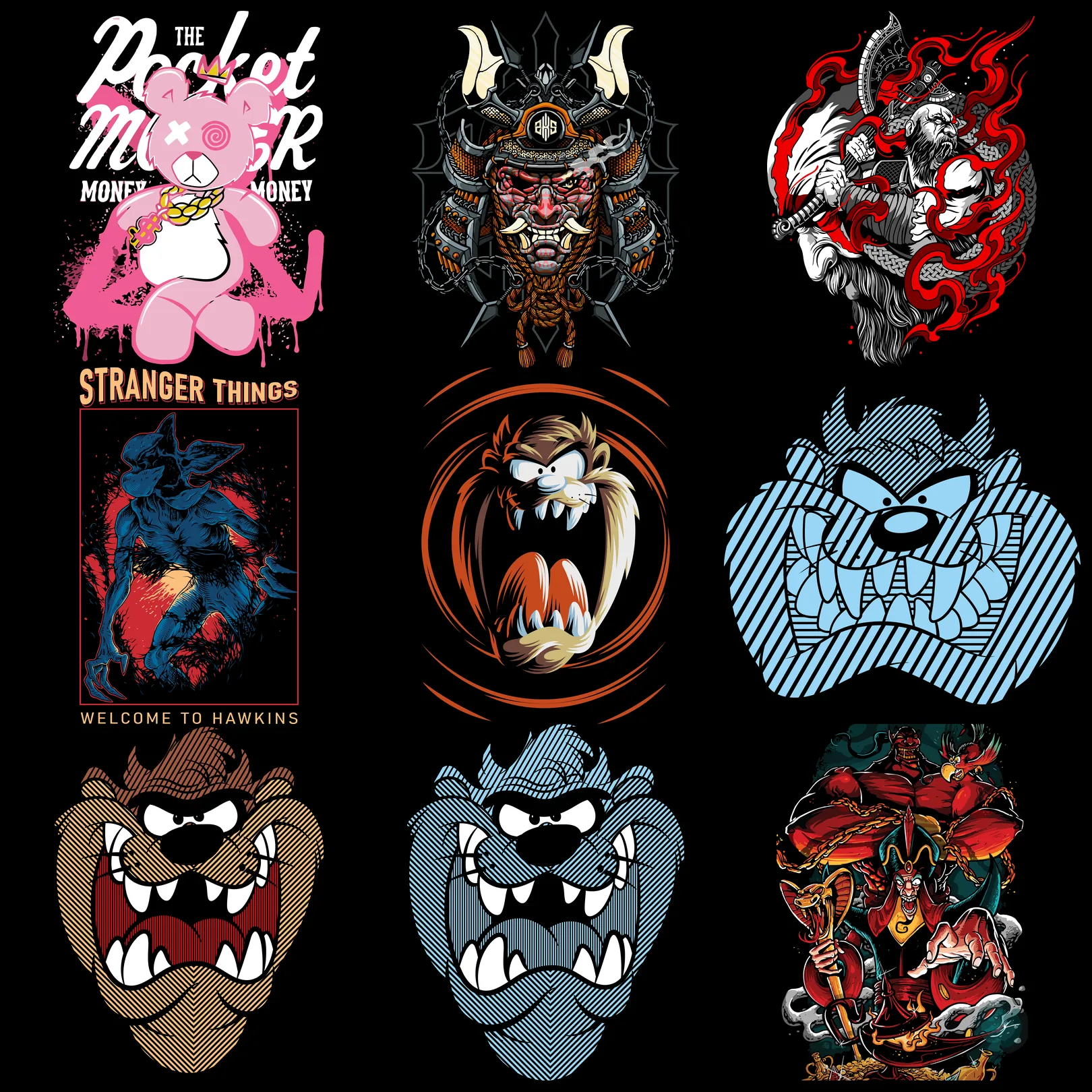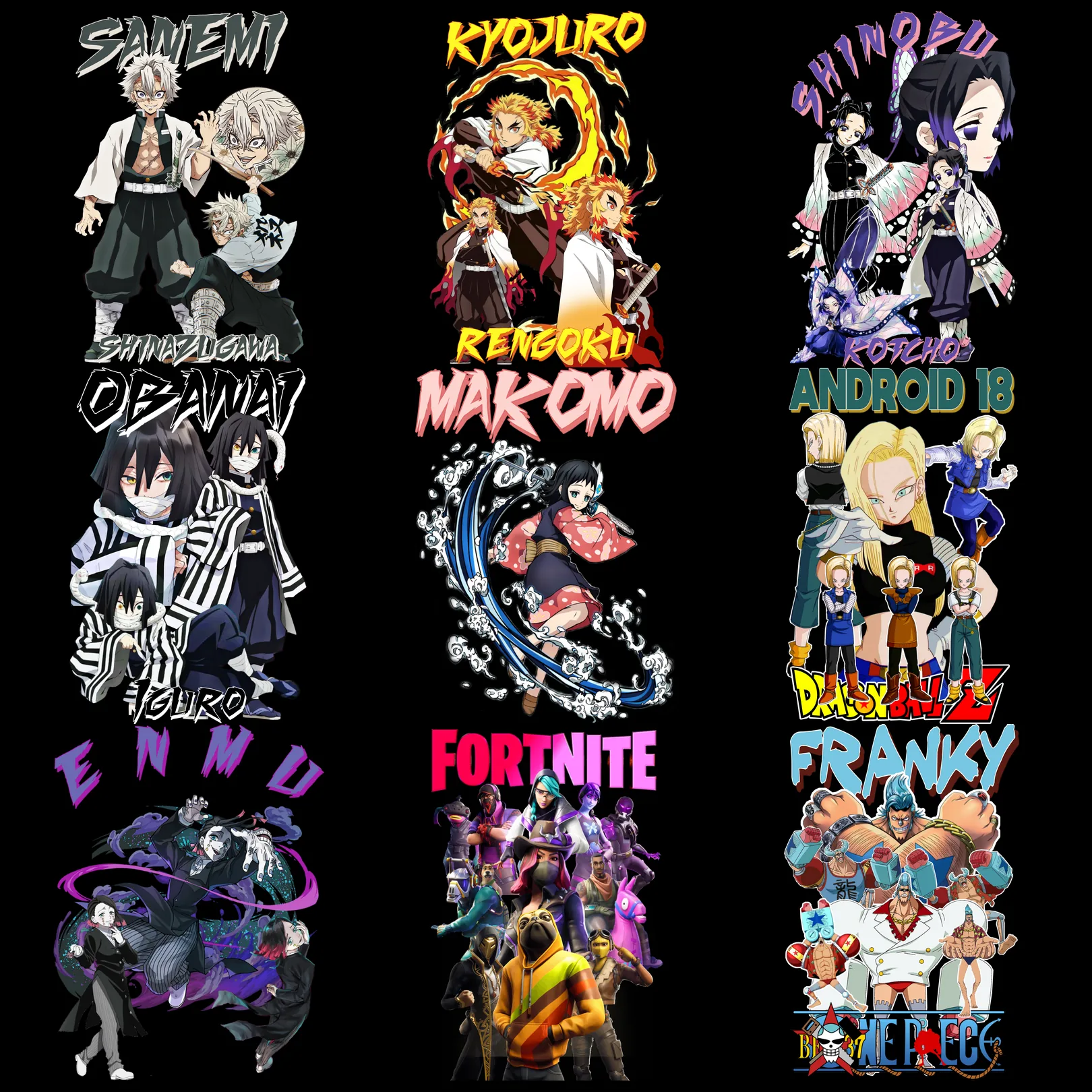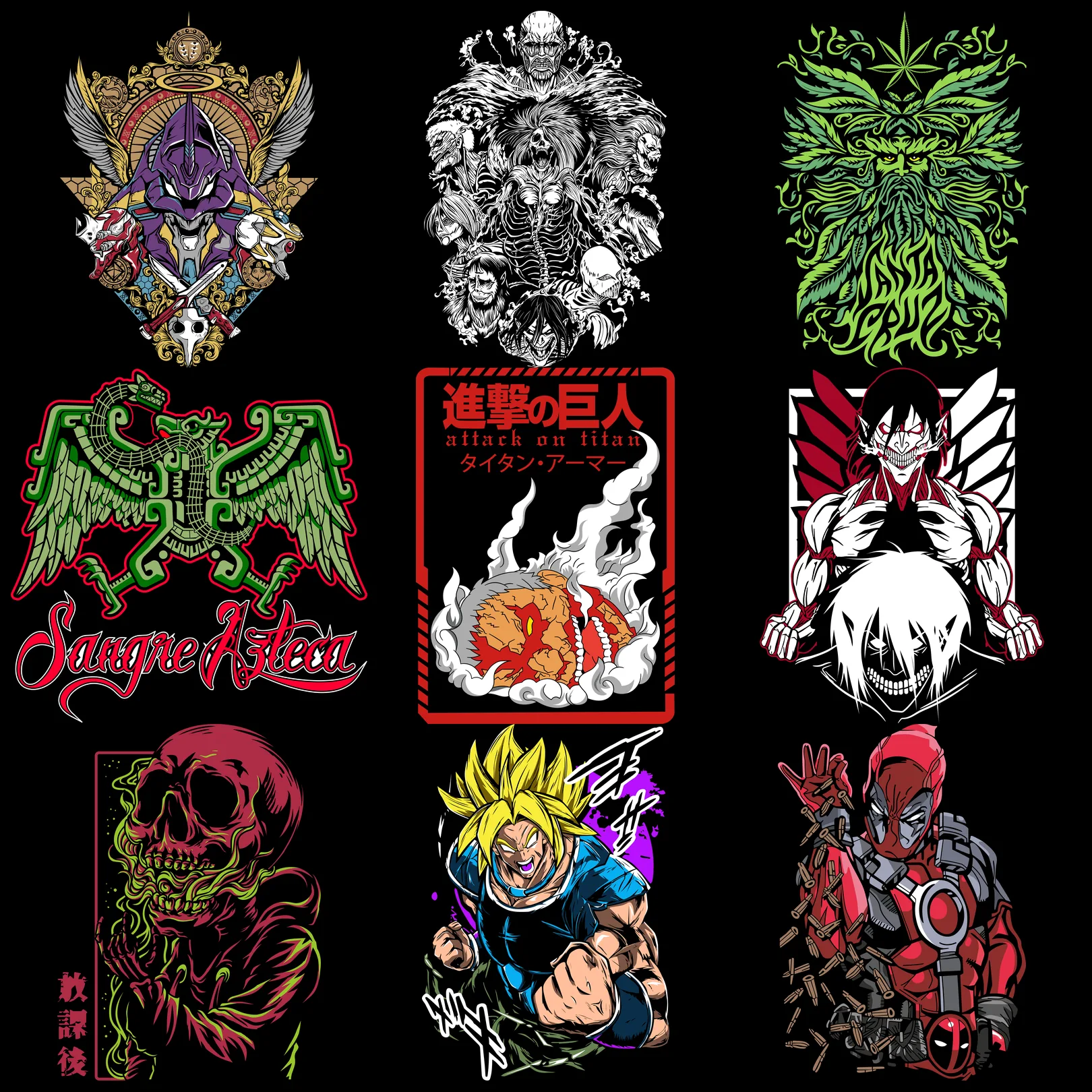 Incluye todos los estilos: Streetwear, Anime, Rock, Hiphop, Artistas, Nba, Nfl, Autos, Motos, Cristianos, Gym, frases, Cartoons, Películas, y más.